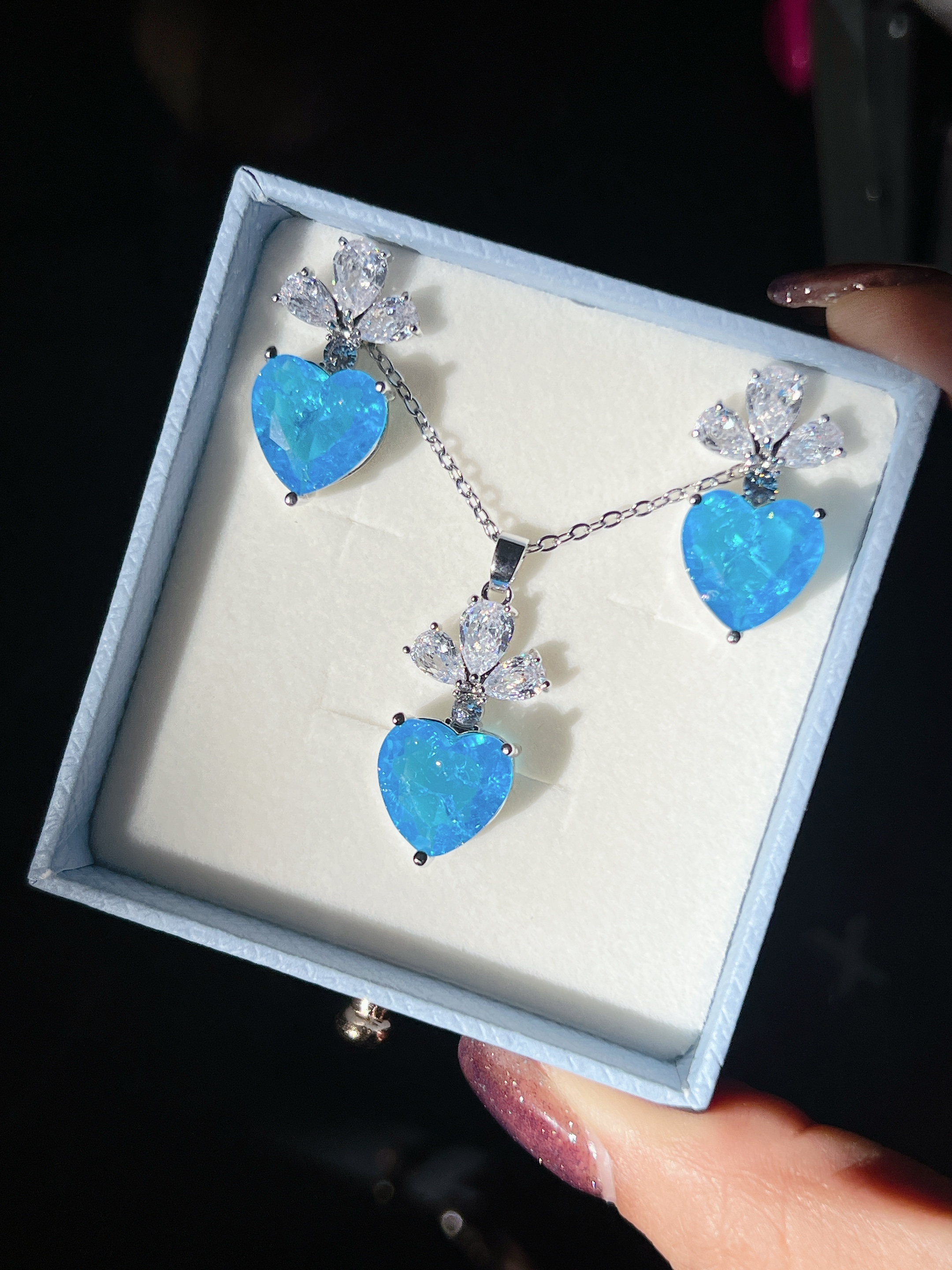 ست فول نگین آبی روشن