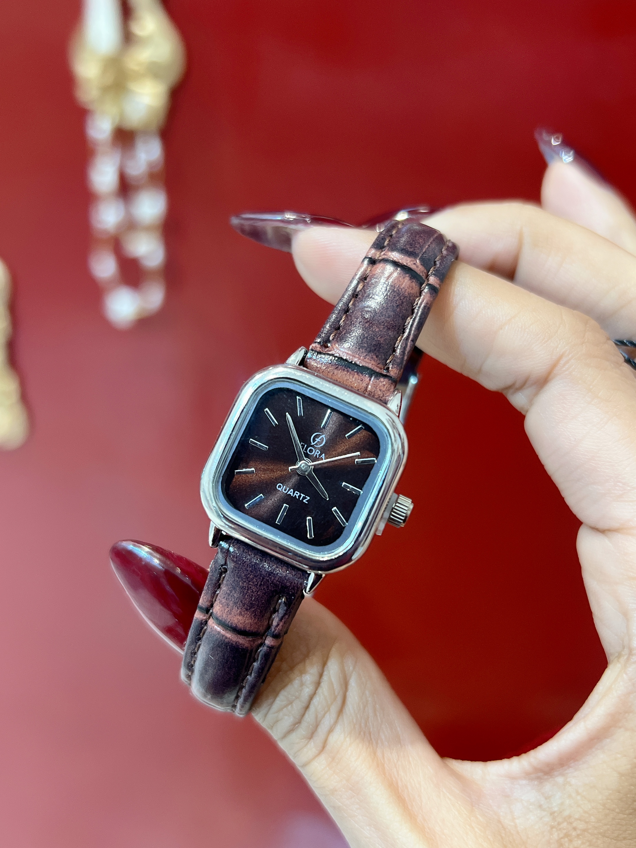 ساعت فنسی بند چرم قهوه ای