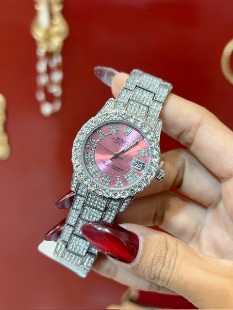 ساعت فول نگین رولکس صورتی