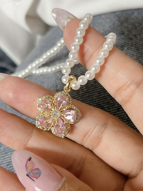 گردنبند مروارید گل رنگ ثابت